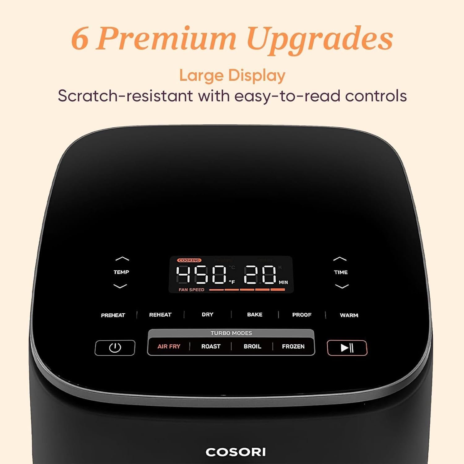 The COSORI TurboBlaze 6.0-Quart Air Fryer delivers faster, healthier cooking with its powerful TurboBlaze™ motor and 5-speed airflow system. Featuring a premium ceramic-coated basket, wide 90°F–450°F temperature range, and 9-in-1 versatility, it cooks crispy, golden meals with up to 95% less oil. Quiet, efficient, and easy to clean — experience smarter, guilt-free cooking today with the TurboBlaze Air Fryer.
